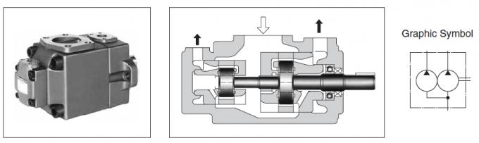 These double pumps consist of two PV2R seires single pumps combined in tandem within a single housing and driven by a common shaft. A Single suction port and two discharge ports are provided so that the output flow can be supplied to separate circuits.